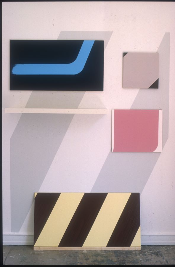 Lack auf Pressspan, 57 x 105 cm, 40 x 40 cm, 57 x 48 cm, 60 x 120 cm;