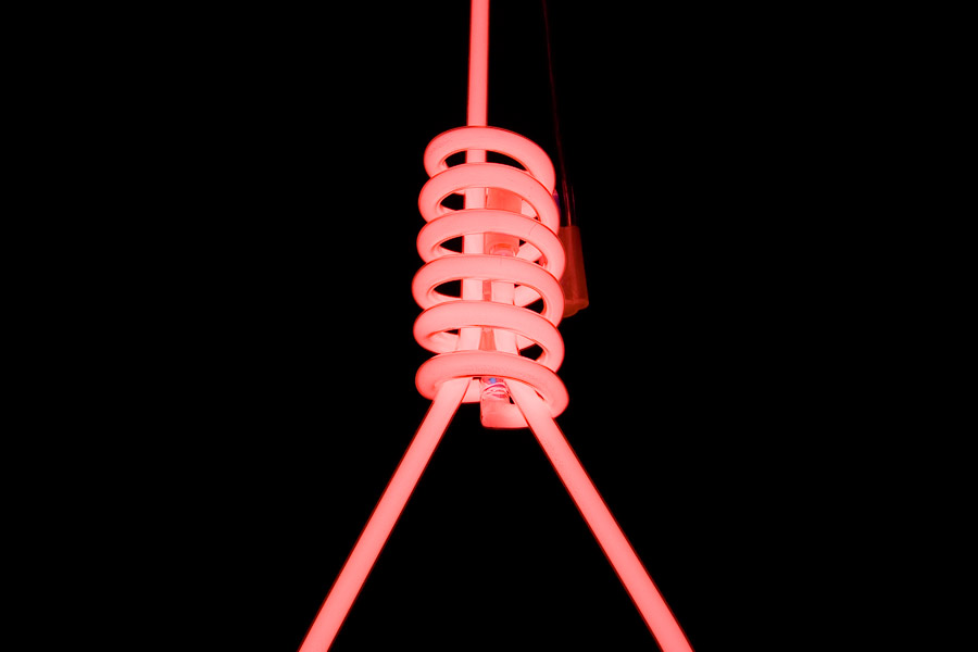 Gebrauchte Werbeleuchtkästen hängen in Reihe nebeneinander, von innen