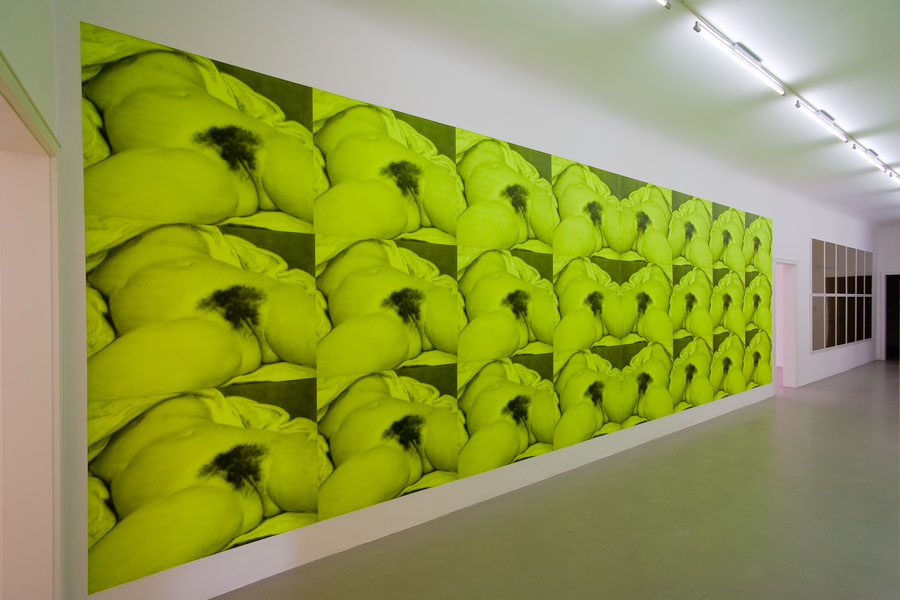 FEMMAGE, 2005, Siebdruck, Chromolux-Karton, weiße Holzrahmen, 12 Stück à 100 x 70 cm, gesamt 203 x 438 cm