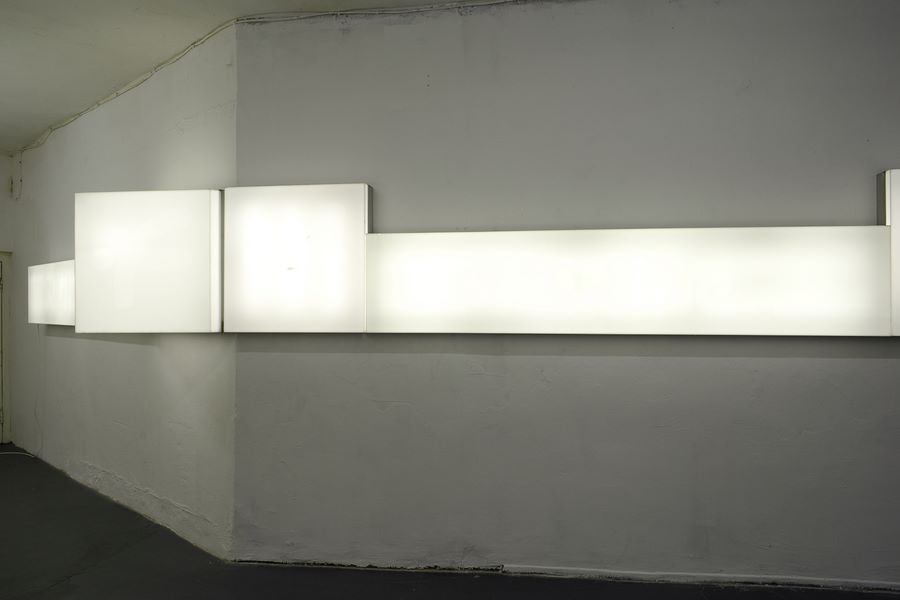 LIGHT BOXES, 2005/2007, Plexiglas, Aluminium, Leuchtstoffröhren, Elektrik, 5teilig, Gesamtmaße 89,5 x 895 x 76,5 cm