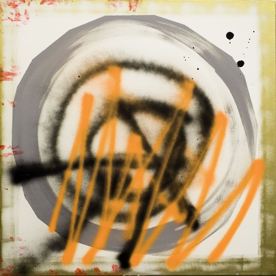 vorne: UFO, 2003, Acryl auf Leinwand, 135 x 150 cm